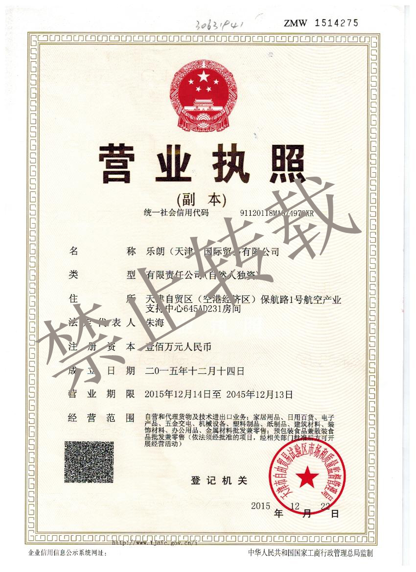 | 公司名稱: | 樂朗(天津)國際貿易有限公司 | ||