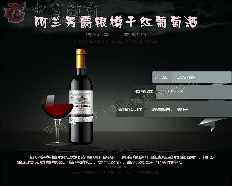 免責聲明:以上所展示的酒水信息由企業提供,內容的真實性、準確性和合法性由酒水企業自行負責。酒商網對此不承擔任何責任。