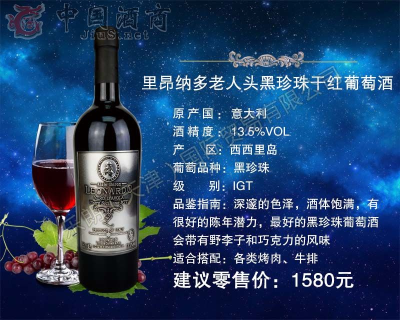 | 產品名稱 | 里昂納多老人頭黑珍珠干紅葡萄酒 | 產品類別 | 葡萄酒招商 |
